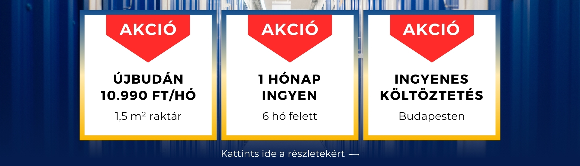 Self Store raktárbérlés árgaranciával, vagyis a legkedvezőbb árat nálunk kaphatod self storage bérlésre*, ráadásul kaució nélkül. 11 raktárépület és több ezer tároló közül tudsz válogatni, ezért segítünk telefonon a neked megfelelő opció kiválasztásában. Magánszemélyként áfa nélkül, vagy céges ügyfélként is bérelheted raktárodat, amihez 0-24 órában hozzáférsz belépőkártyáddal. Kamerarendszer, riszató, füstjelző, éjjel-nappal hívható ügyelet és személyes ügyfélszolgálat garantálja a biztonságos és egyszerű tárolást.
