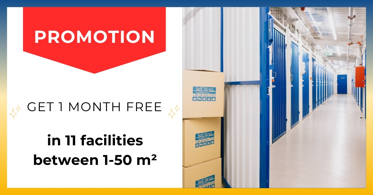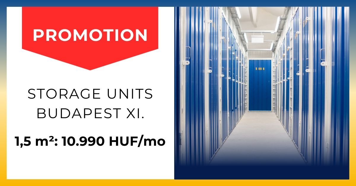 📦Újbuda Storage Facility promotion: as part of this promotion, you can rent 1.5 m2 storage units from HUF 10,990 per month in our facility in Újbuda (1117 Budapest, Budafoki út 111-113.). This offer cannot be combined with other discounts and is valid until further notice.